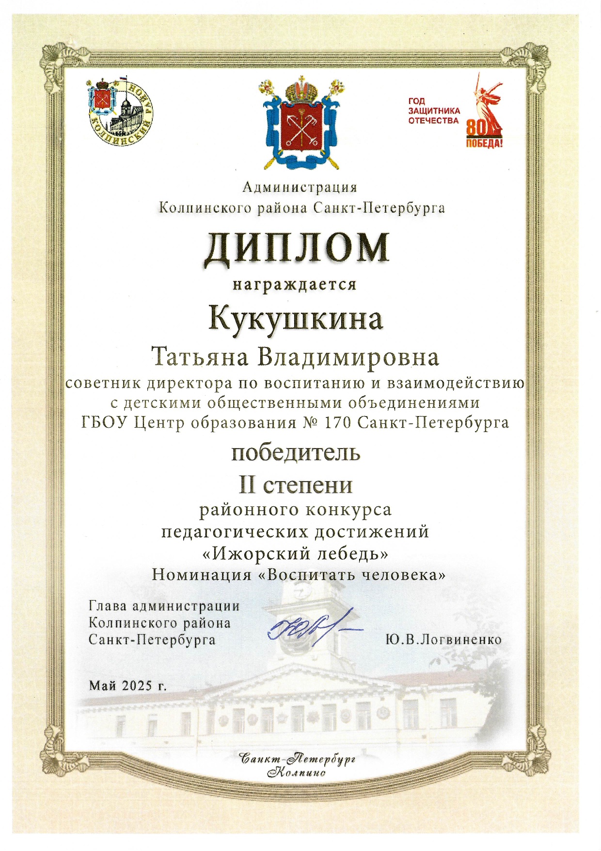 Советник директора по воспитанию и взаимодействию с детскими общественными объединениями: Кукушкина Татьяна Владимировна