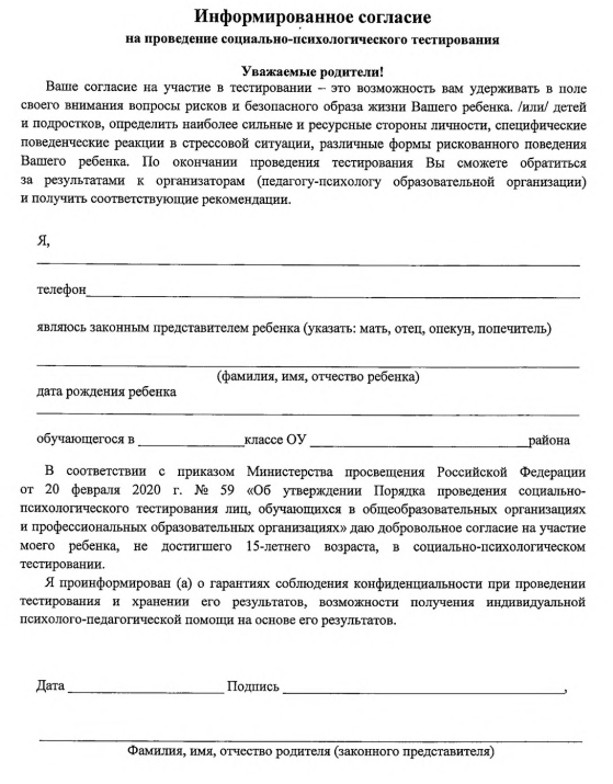 — Пример бланка информированного добровольного согласия для родителей (до 15 лет)
