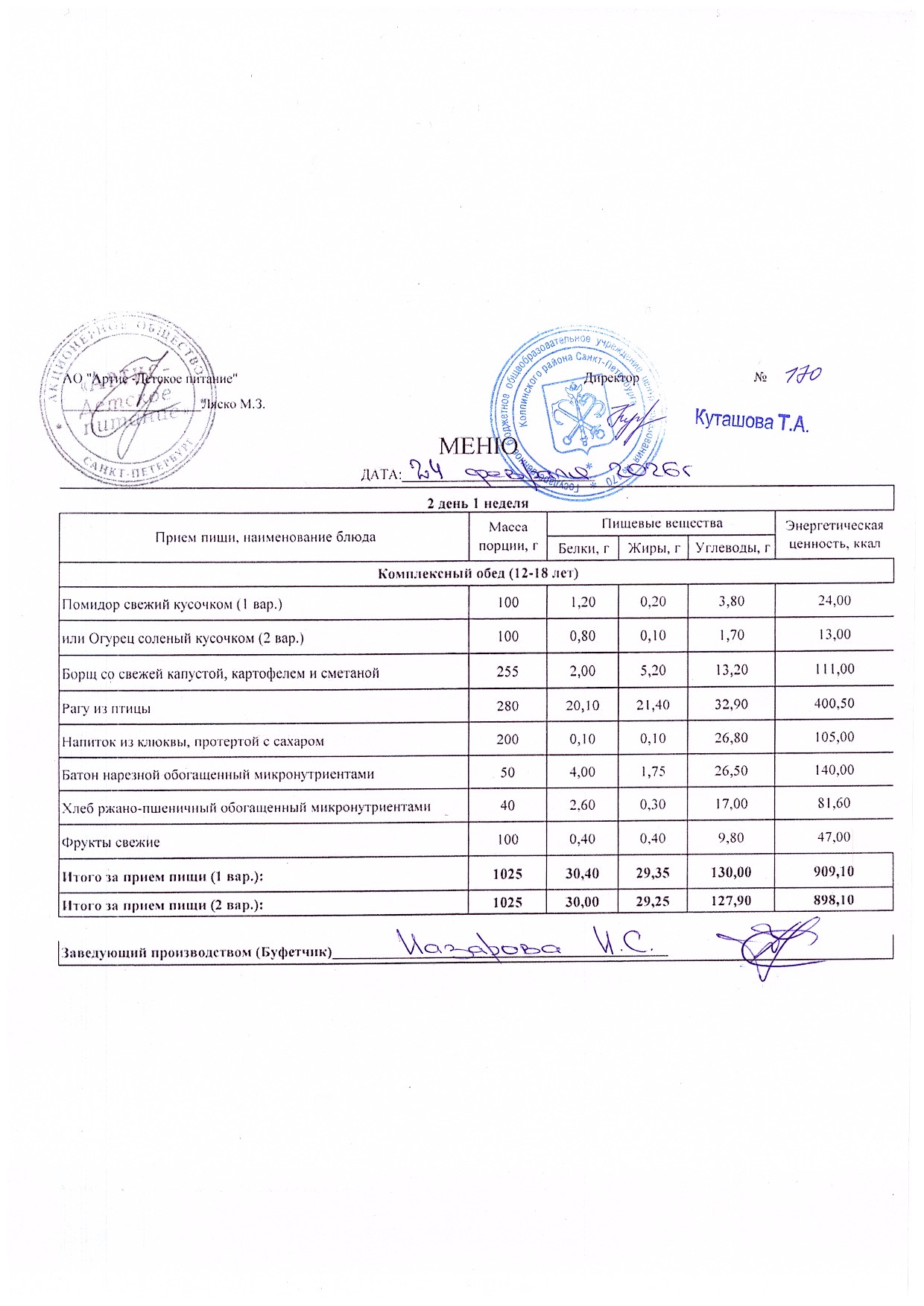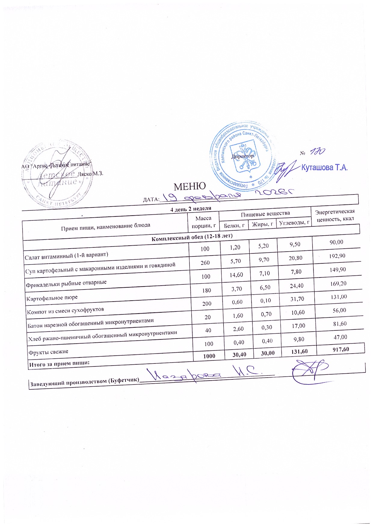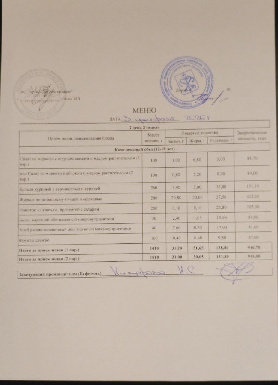 ОТВЕТСТВЕННЫЙ ЗА ОРГАНИЗАЦИЮ ПИТАНИЯ ОБУЧАЮЩИХСЯ в Центре образования Манцевич Ирина Прокопьевна (8-931-337-99-63)