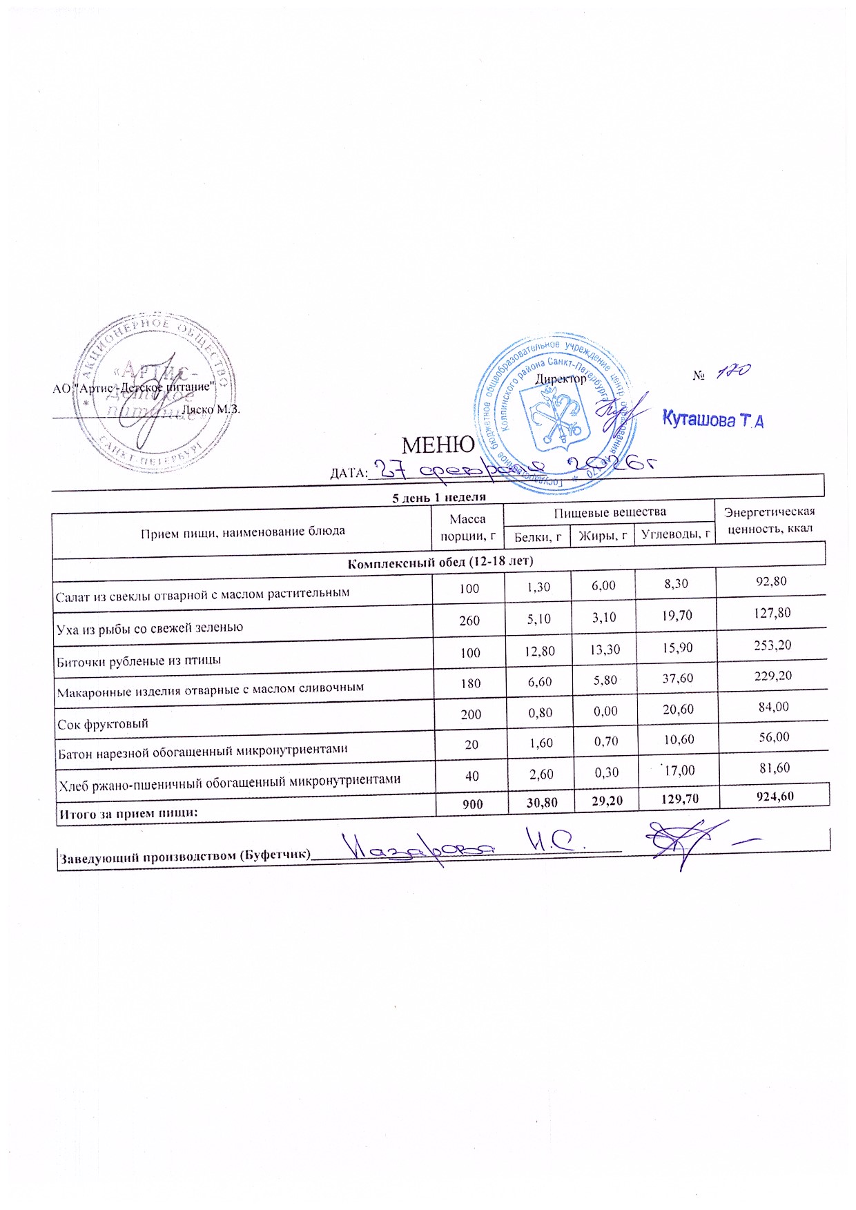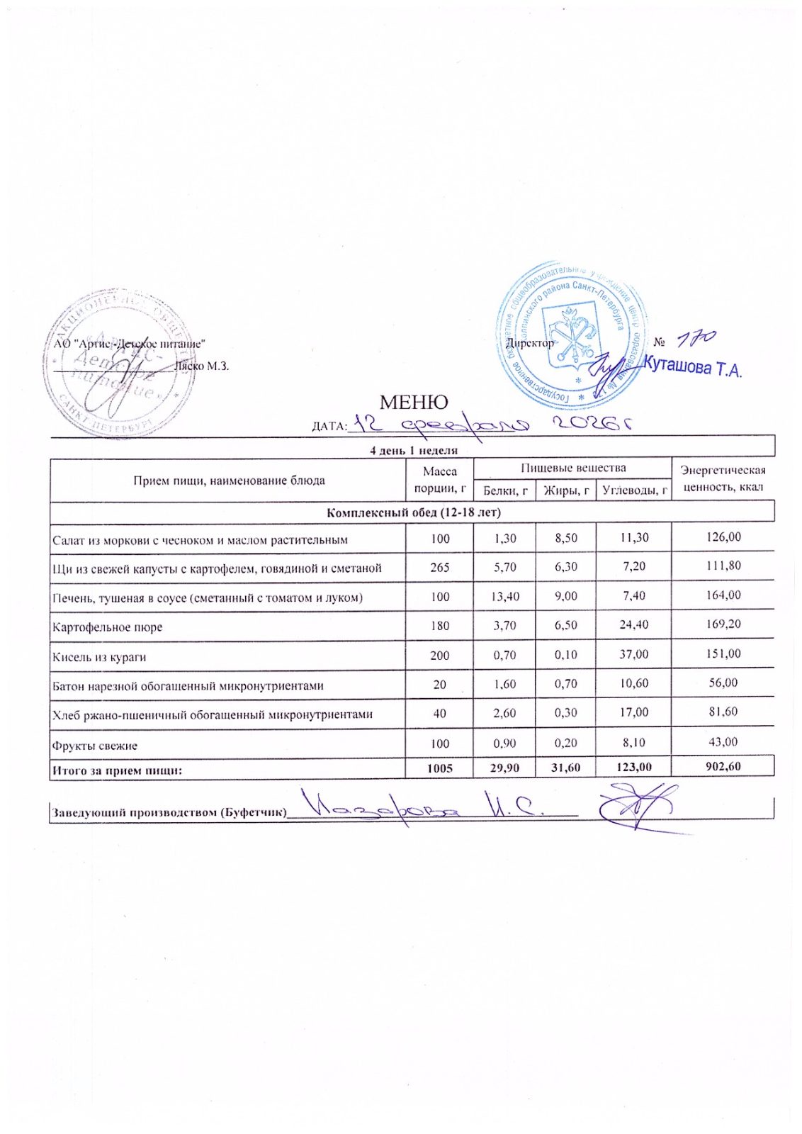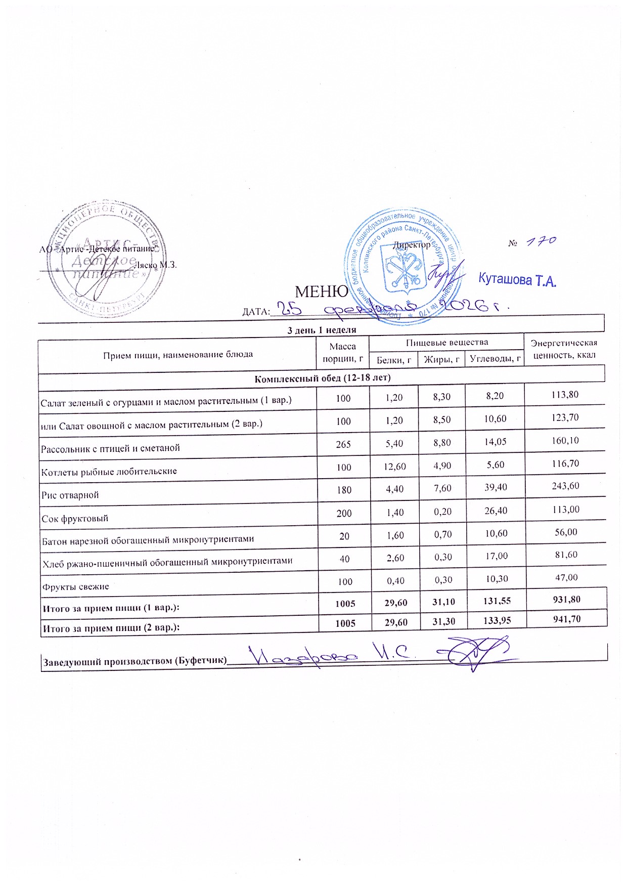 ОТВЕТСТВЕННЫЙ ЗА ОРГАНИЗАЦИЮ ПИТАНИЯ ОБУЧАЮЩИХСЯ в Центре образования Манцевич Ирина Прокопьевна (8-931-337-99-63)