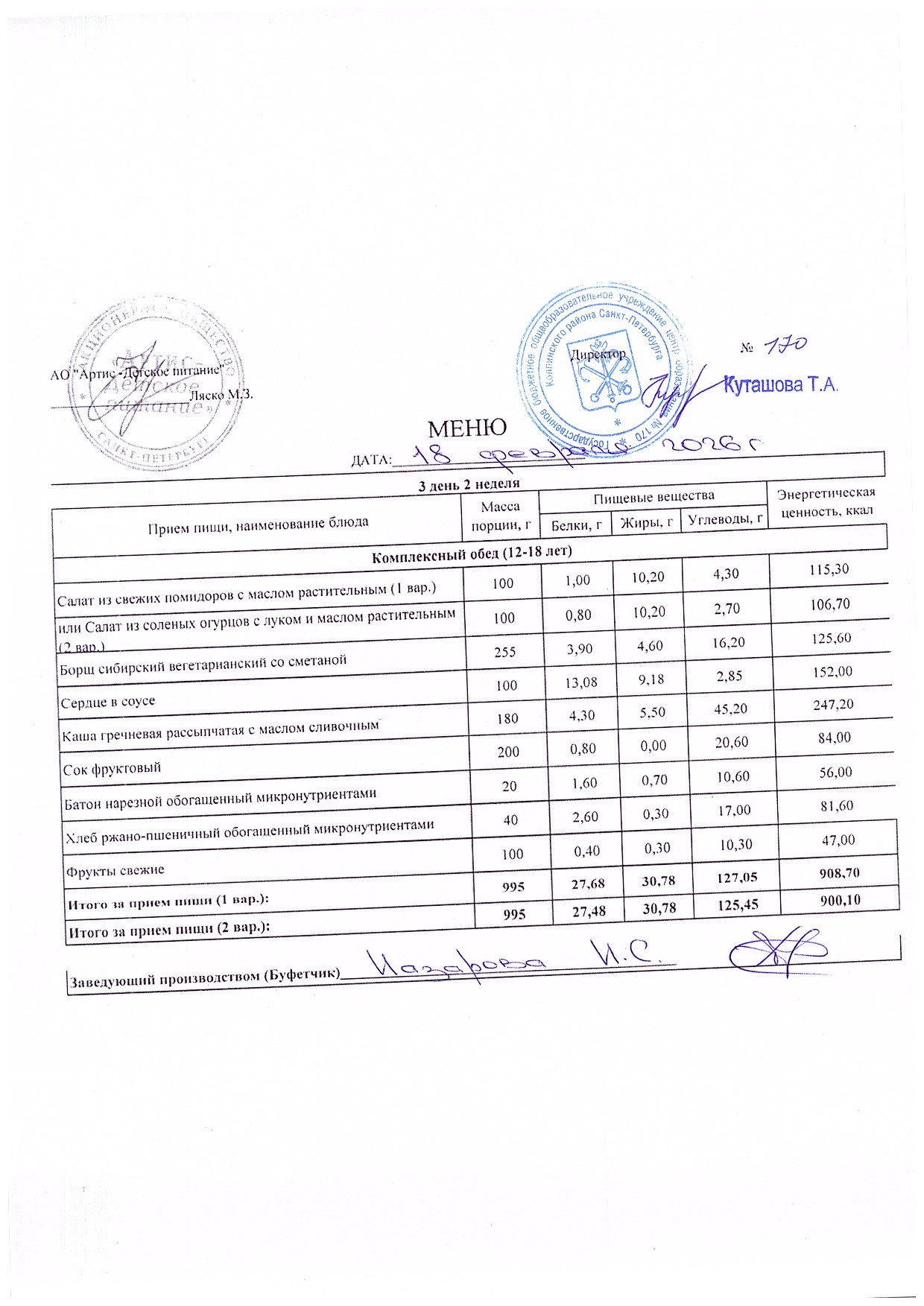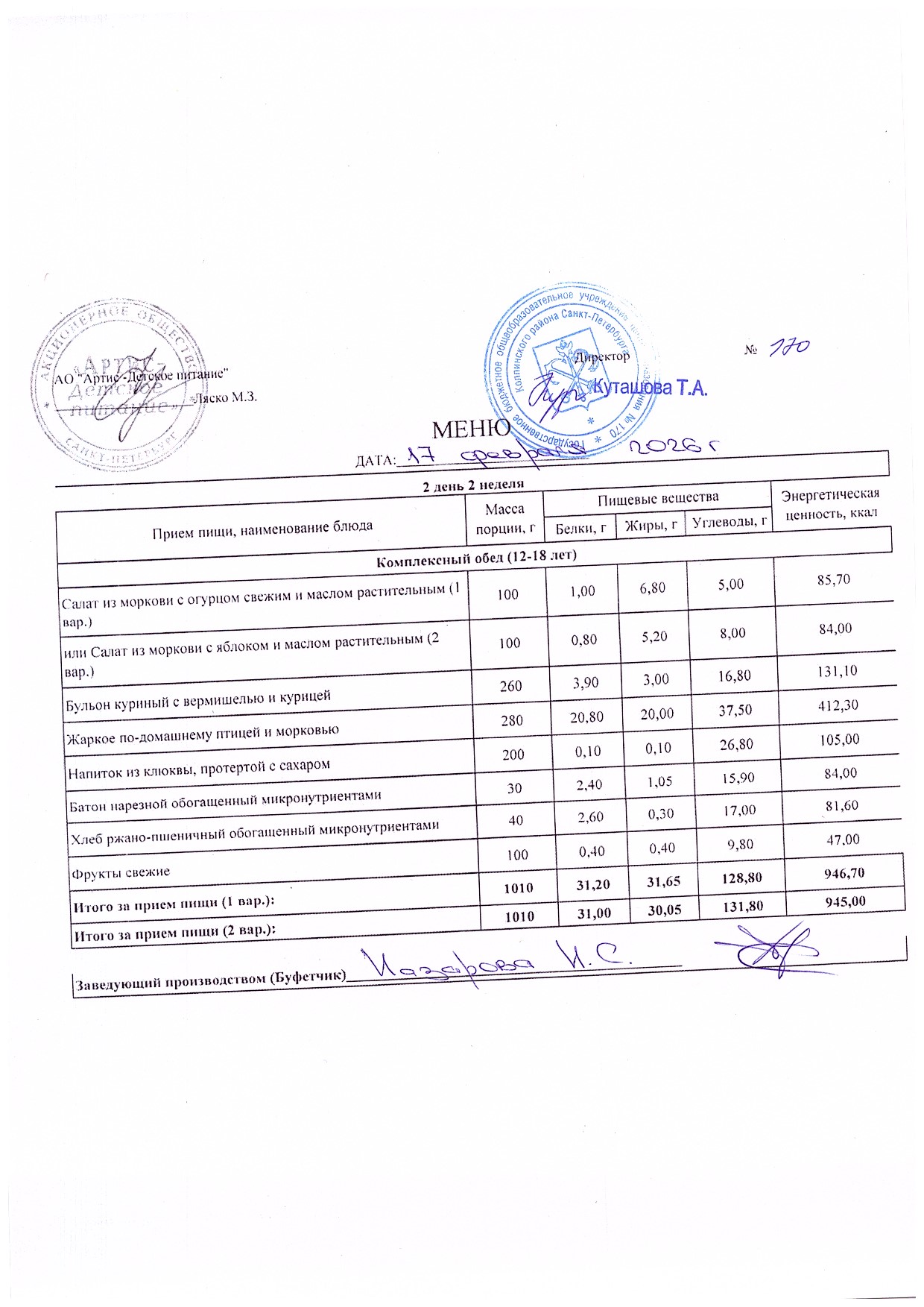 Диетическое меню в ГБОУ Центр образования №170 Санкт-Петербурга отсутствует
