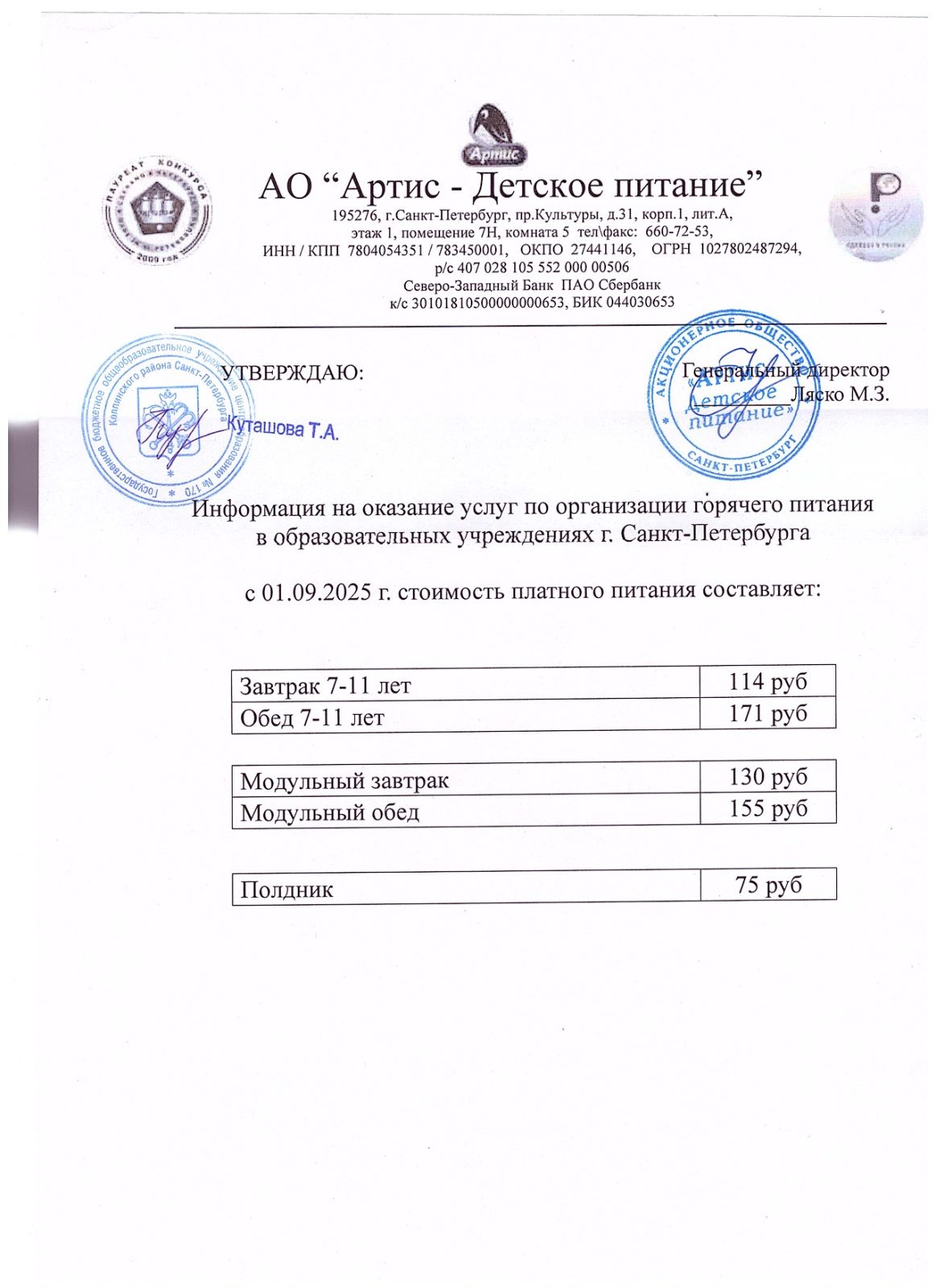 Телефоны по вопросам организации питания в ГБОУ Центр образования №170 — 8-931-337-99-63